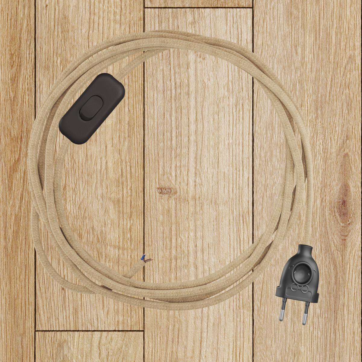 Câble textile : 2.14X [XZ2PN06] Câble plat en textile recouvert de Jute Naturel - PN06