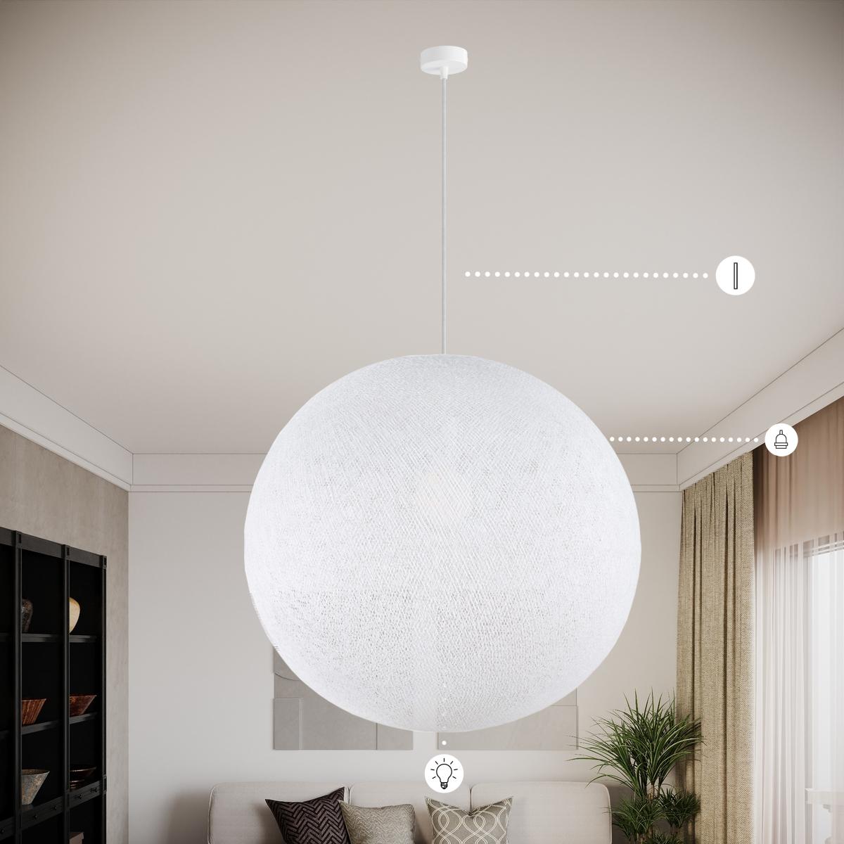 Lampshade : 1X [PAT2XXL-CP4622] Handmade threaded Sphere Light lampshade - Finish: White Polyester, Size: XXL - Ø 67 cm