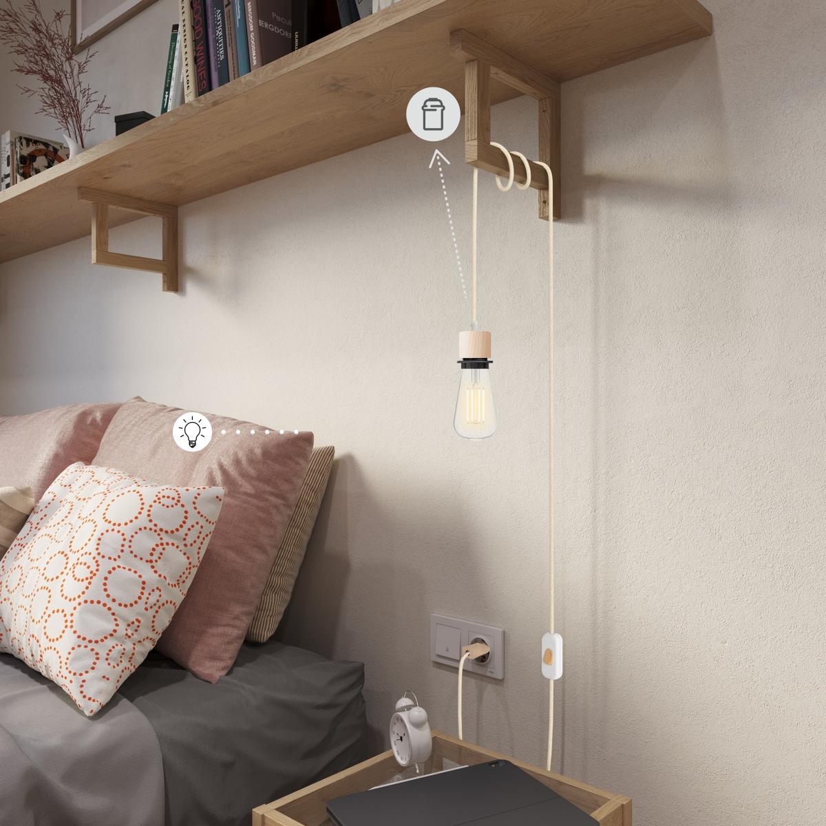 Douille : 1X [KBL3110] Kit douille E27 filetée cylindrique en bois avec serre-câble pour abat-jour - Finition: Neutral