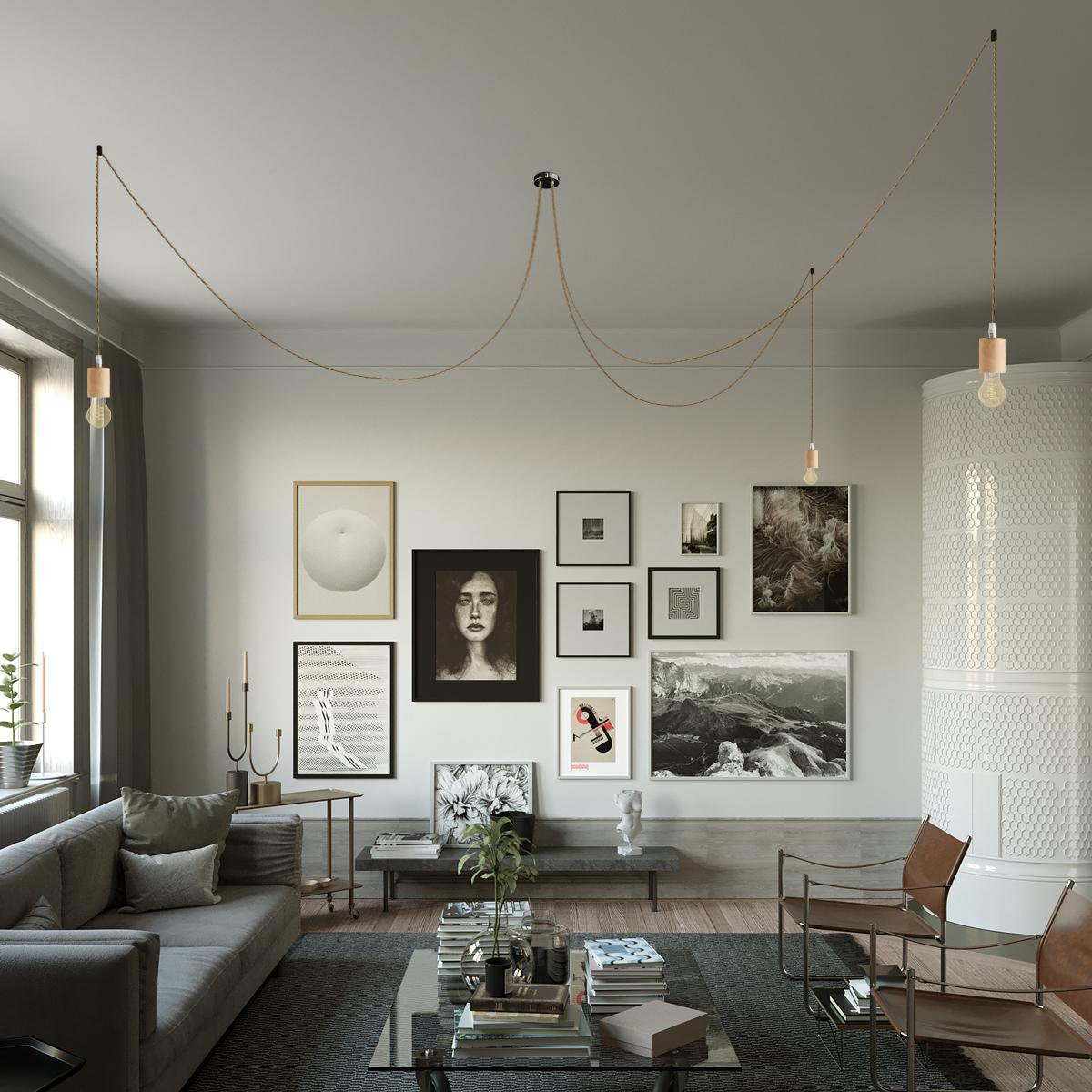 Porte-lampe : 3ème bras : 1X [KBL0110] Kit douille E27 en bois - Finition: Neutral